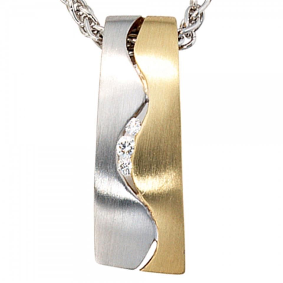 Anhänger 585 Gelbgold Weißgold bicolor matt 3 Diamanten Brillanten