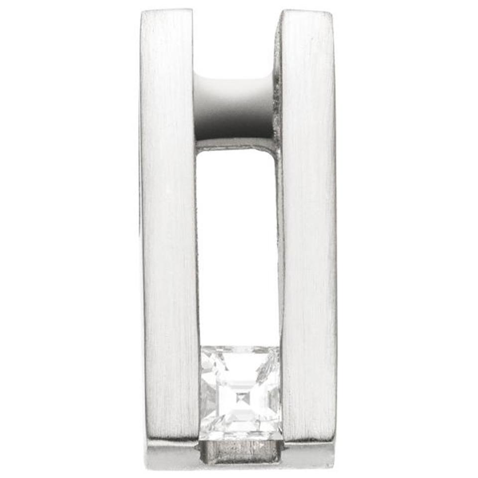 Anhänger aus 950 Platin, mattiert, mit einem Diamanten im Carree-Schliff, 0,15 ct., W/SI wesselton (weiß), SI=(kleine, mit bloßem Auge nicht erkennbare natürliche Einschlüsse) Höhe ca. 13,9 mm Breite ca. 6 mm Tiefe ca. 3,9 mm Innenmaße der Öse ca. 4,8 mm x 2,2 mm Gewicht ca. 3,3 g * Bitte beachten Sie die Maße! Auf dem Foto kann der Artikel größer wirken *