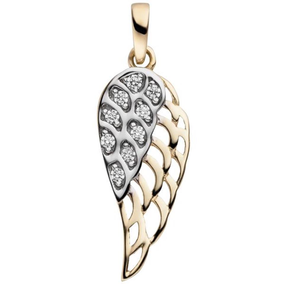 Anhänger Flügel 333 Gold Gelbgold bicolor 9 Zirkonia