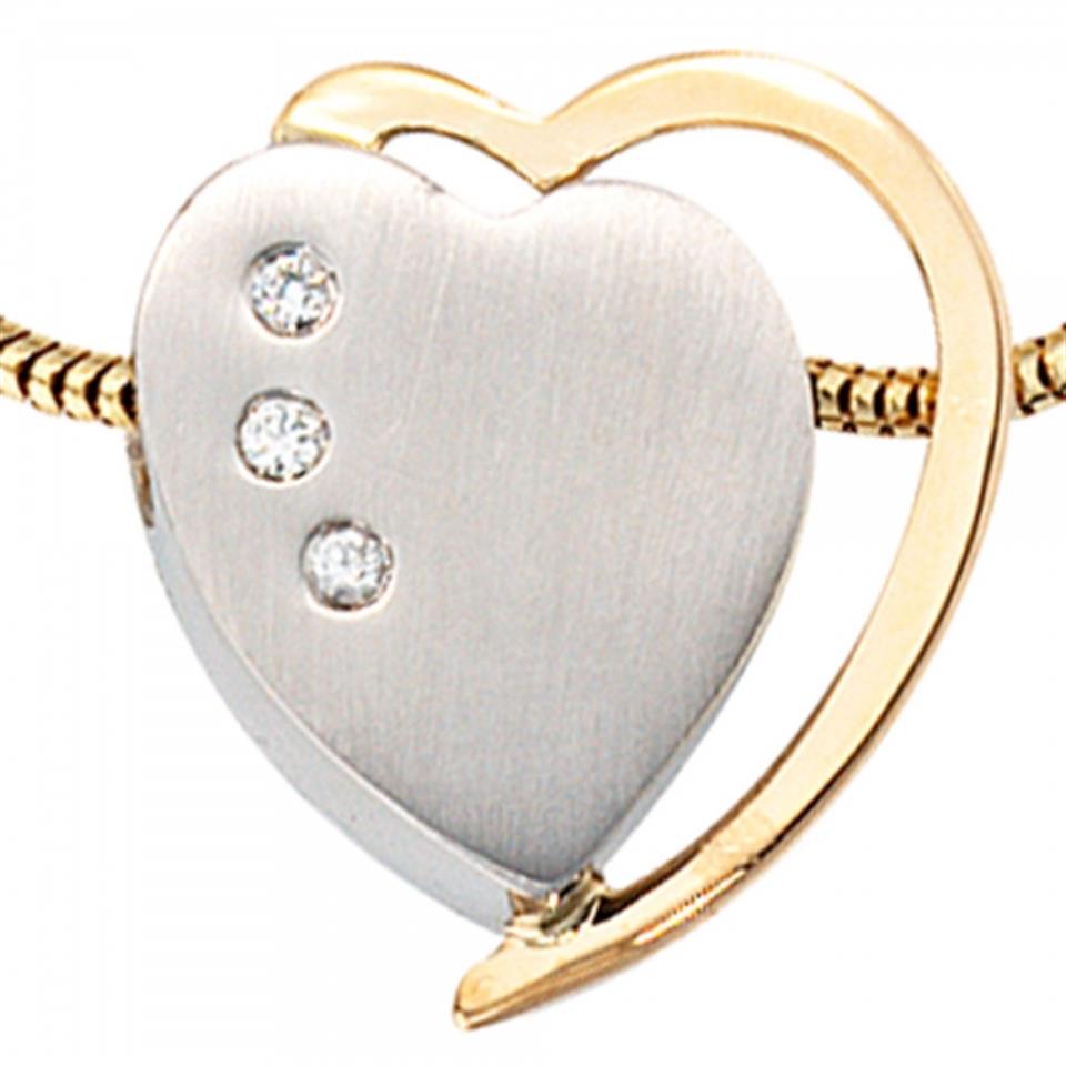 Anhänger Herz 585 Weißgold Gelbgold bicolor mattiert 3 Diamanten
