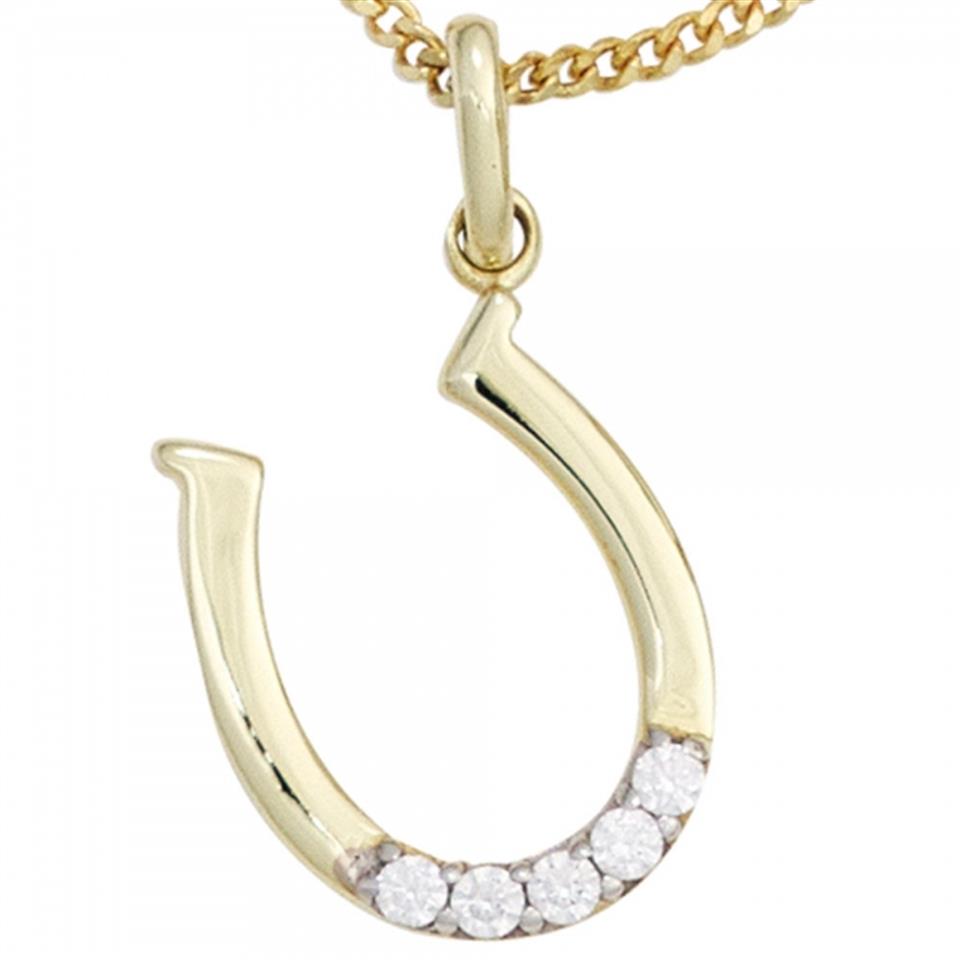 Anhänger Hufeisen 333 Gelbgold teilrhodiniert 5 Zirkonia