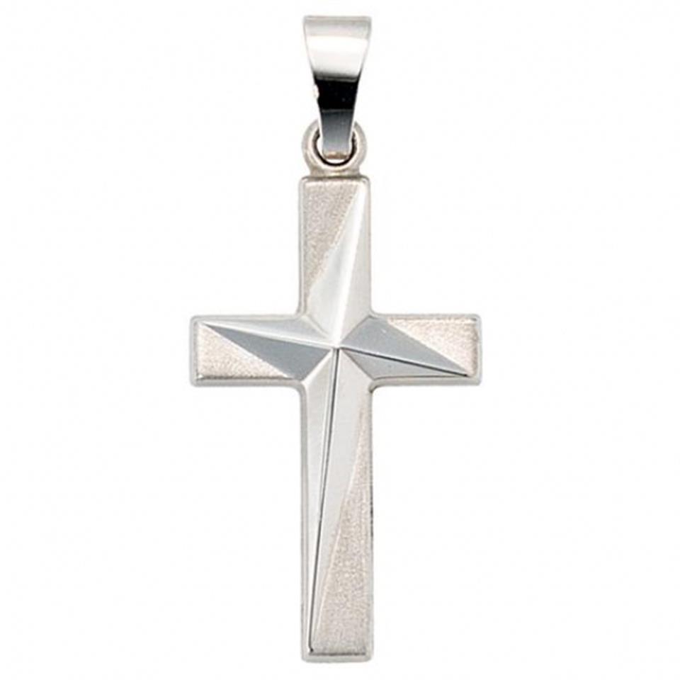 Anhänger Kreuz 375 Gold Weißgold mattiert