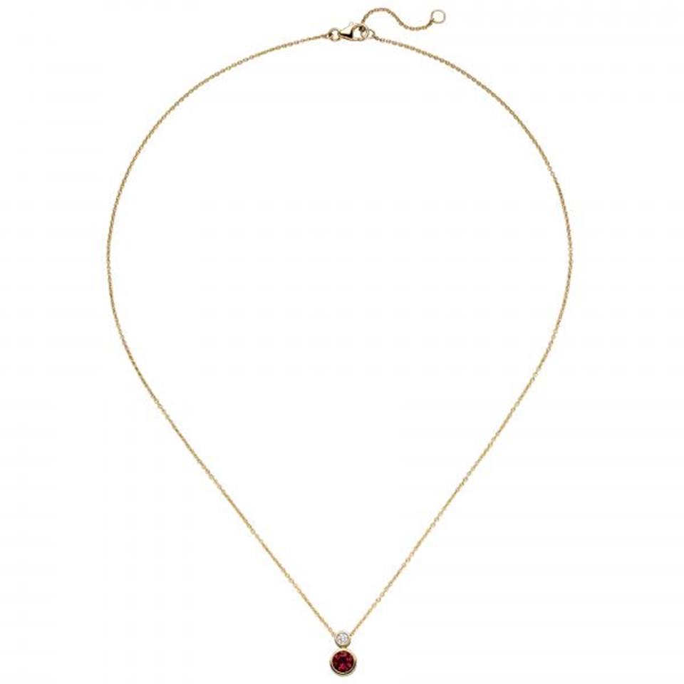 Collier 585 Gold Gelbgold 1 Rubellit 1 Diamant Brillant 45 cm
