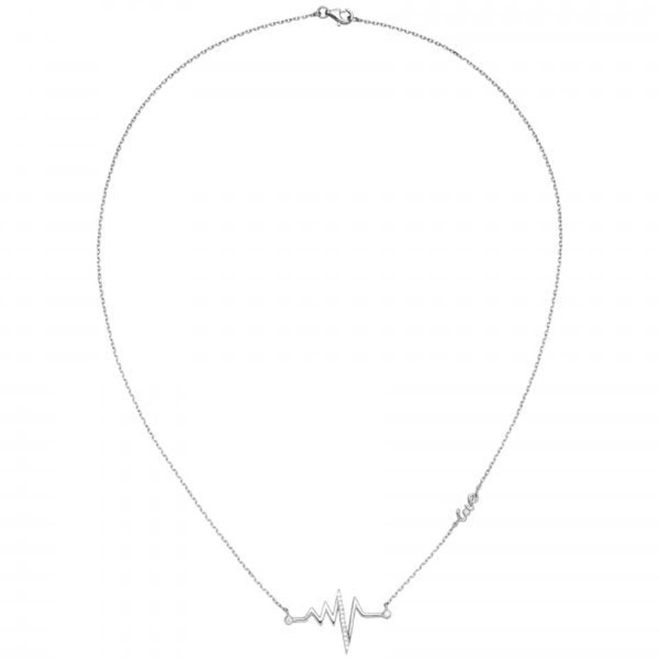 Collier / Ankerkette mit Anhänger "Herzschlag/Love" aus 925 Sterlingsilber, rhodiniert, mit 16 Zirkonia und Karabinerverschluss Länge ca. 45 cm Kettenstärke ca. 1,1 mm x 1,1 mm Maße des Anhängers: Höhe ca. 16,5 mm Breite ca. 27,1 mm Tiefe ca. 1,8 mm Gewicht ca. 2,3 g Der Artikel ist anlaufgeschützt (rhodiniert) * Bitte beachten Sie die Maße! Auf dem Foto kann der Artikel größer wirken *