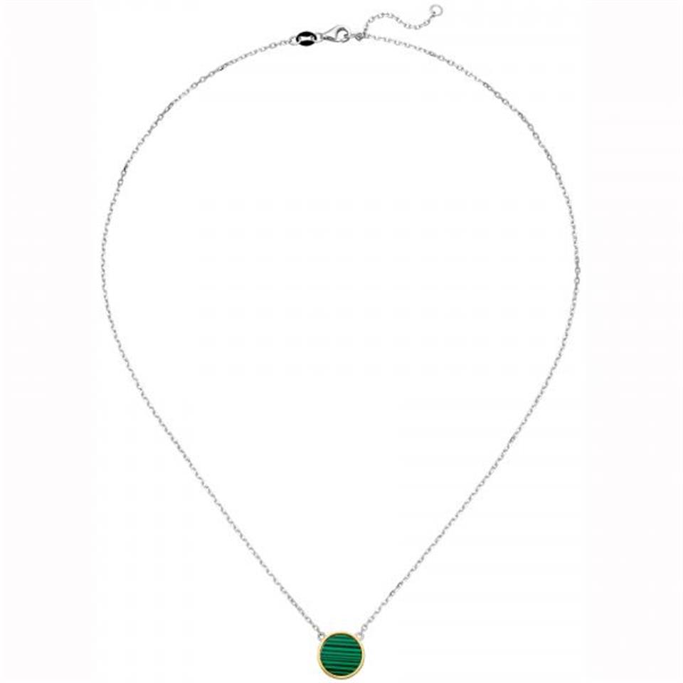 Collier 925 Sterling Silber bicolor vergoldet mit Malachit 45 cm