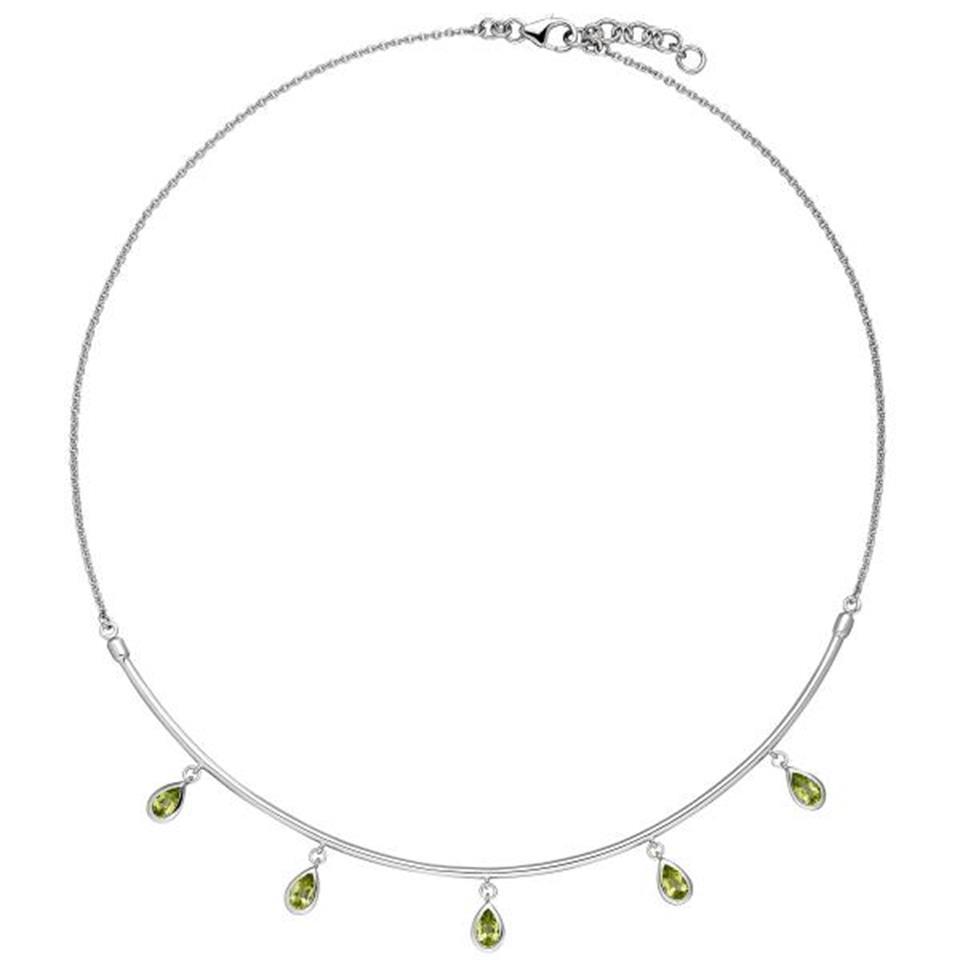 Collier Halskette 585 Gold Weißgold 5 Peridote grün 44 cm Kette