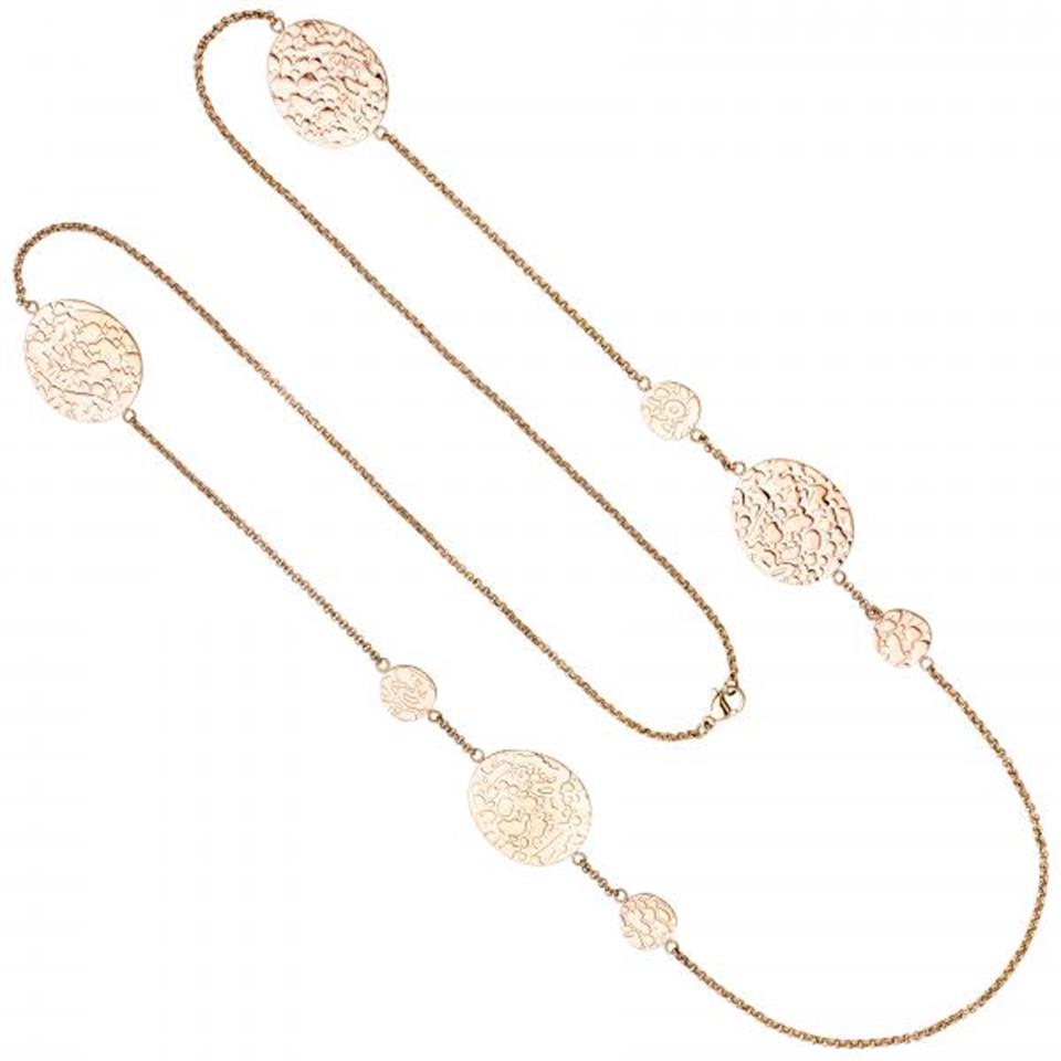 Collier / Halskette aus Edelstahl mit rotgoldfarbener PVD-Beschichtung, mit Struktur, mit Karabinerverschluss, beidseitig tragbar Länge ca. 90 cm Kettenstärke ca. 2 mm x 2 mm Breite ca. 22,2 mm Tiefe ca. 1,3 mm Gewicht ca. 25,6 g * Bitte beachten Sie die Maße! Auf dem Foto kann der Artikel größer wirken *