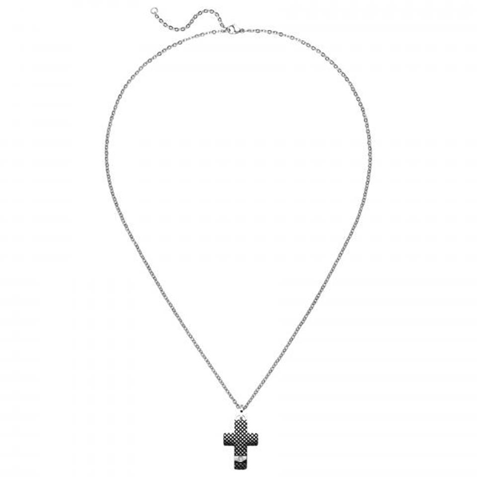 Collier Halskette mit Kreuz-Anhänger aus Edelstahl mit Zirkonia 56 cm