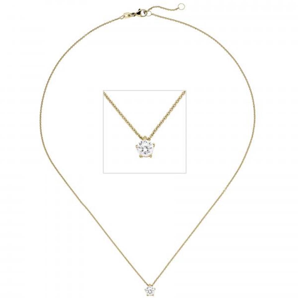Collier Kette mit Anhänger 585 Gelbgold 1 Diamant Brillant 0,50 ct., 45 cm