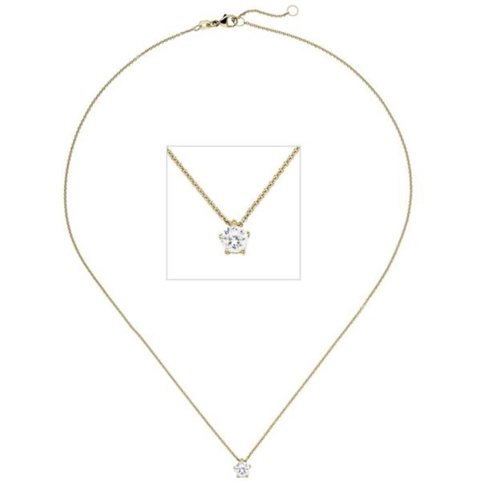 Collier Kette mit Anhänger 585 Gelbgold 1 Diamant Brillant 0,70 ct. 45 cm