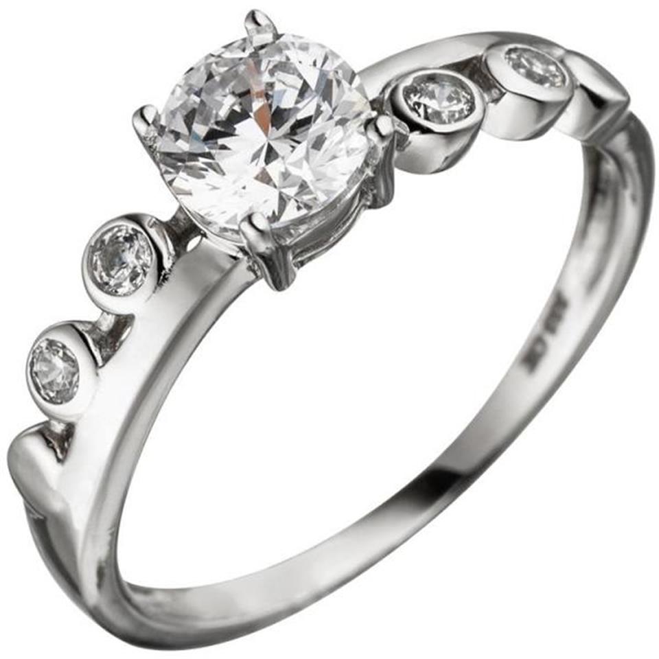 Damen Ring 333 Gold Weißgold 5 Zirkonia Weißgoldring (Größe: 56