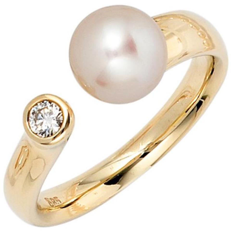 Damen Ring 585 Gold Gelbgold 1 Perle 1 Diamant Brillant (Größe: 60