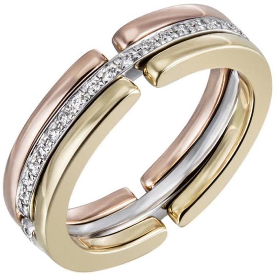 Damen Ring 585 Gold Tricolor mit Diamanten rundum (Größe: 56