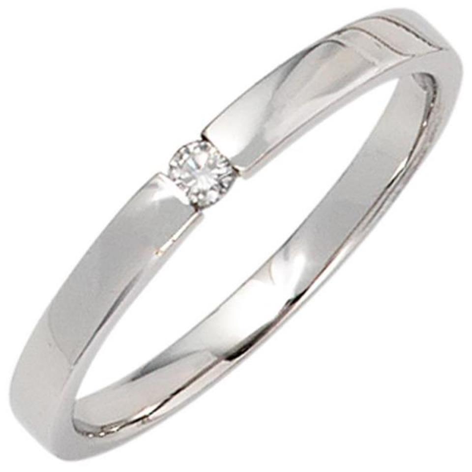 Damen Ring 585 Gold Weißgold, 1 Diamant Brillant 0,05ct. Weißgoldring (Größe: 52