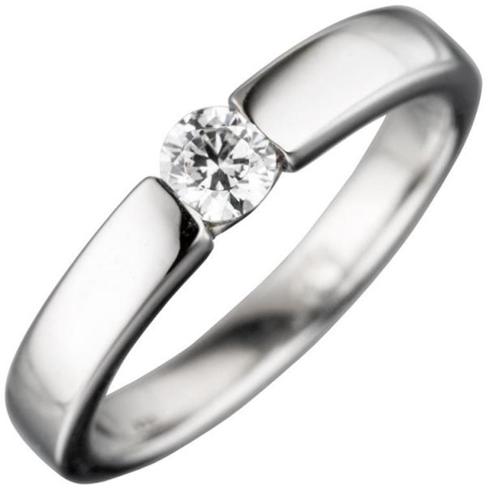 Damen Ring 925 Sterling Silber rhodiniert mit 1 Zirkonia (Größe: 56