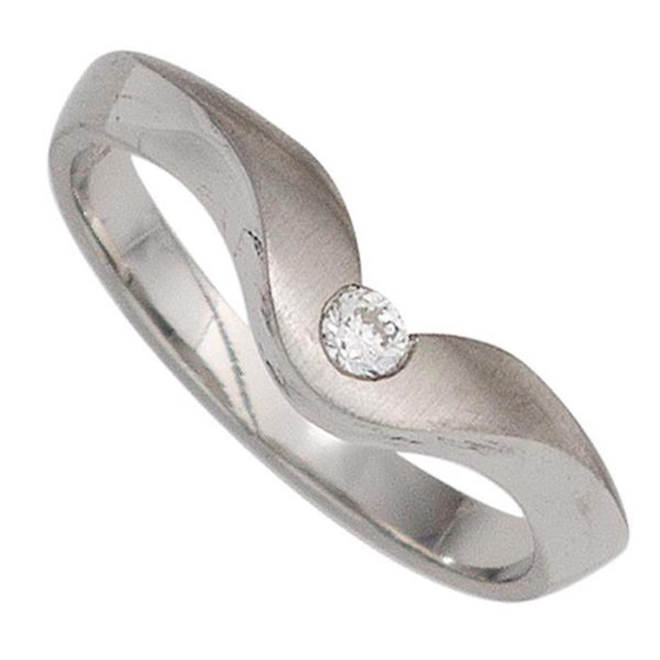 Damenring 950 Platin, teilmattiert, mit einem Diamant-Brillanten, 0,08 ct., W/SI wesselton (weiß), SI=(kleine, mit bloßem Auge nicht erkennbare natürliche Einschlüsse), Feinbearbeitung gut, Breite ca. 5,7 mm, Tiefe ca. 2,4 mm, Gewicht ca. 4,4 g * Bitt