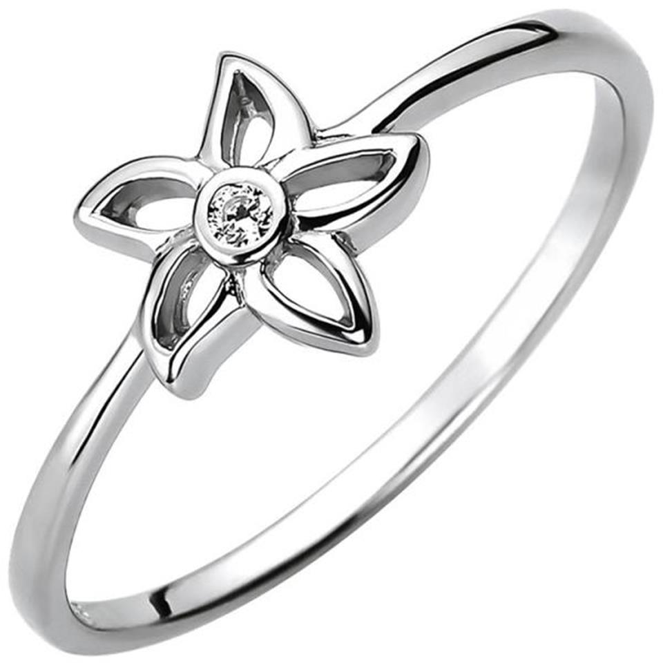 Damen Ring Blume 925 Sterling Silber 1 Zirkonia (Größe: 58