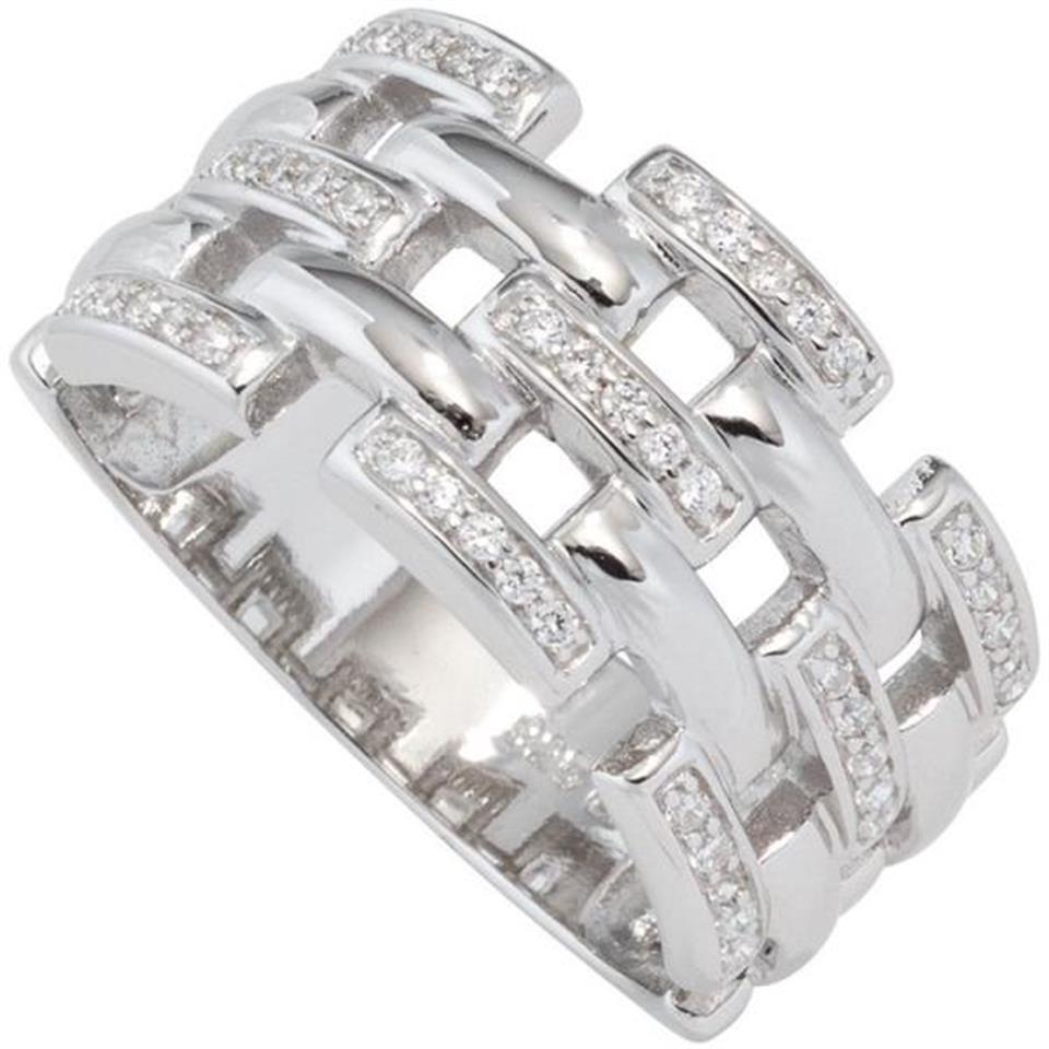 Damen Ring breit 925 Sterling Silber rhodiniert mit Zirkonia (Größe: 60