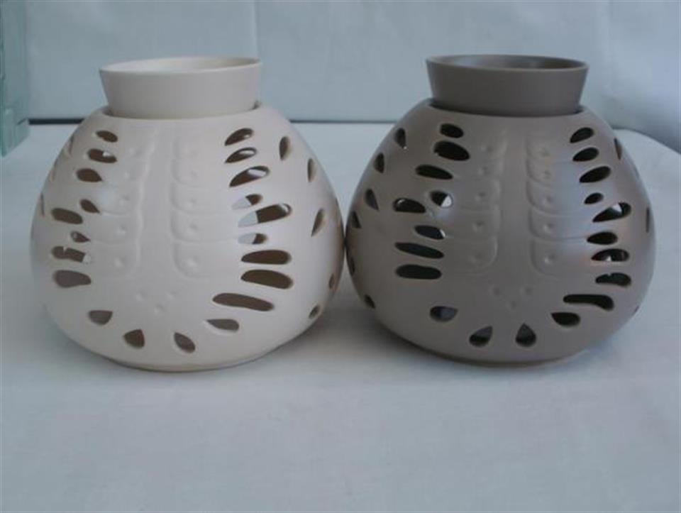 15 cm hohe Duftlampe aus Keramik in Taupe oder Altweiß Diese wunderschöne Duftlampe in Altweiß oder Taupe ist aus Keramik mit vielen aufwendigen Details gearbeitet. Sie hat eine Höhe und einen Durchmesser von ca. 15 cm. Ein sehr schöner Anblick an vielen Stellen der Dekoration. In die Keramikschale wird das Wasser mit Duftöl oder ein Duftdrops eingefüllt. In die Duftlampe wird ein Teelicht gestellt. Zündet man das Teelicht an, verdampft das Wasser mit dem Duftöl und verbreitet einen angenehmen Duft. Es tritt ein Effekt der Erholung und ein Gefühl der Entspannung ein. Lieferung erfolgt ohne Duftöle und Teelichter Höhe: ca. 15 cm Material: Keramik Farbe: taupe, altweiß Gewicht: ca. 0,580 kg Die passenden Düfte oder Duftdrops finden Sie auch in unserem Shop.