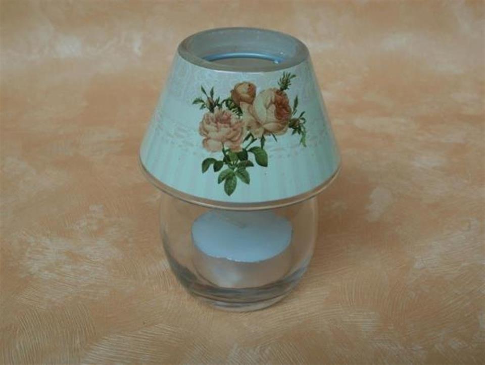 Glaslampe für Teelichter mit Rosen Dekor, 9 cm