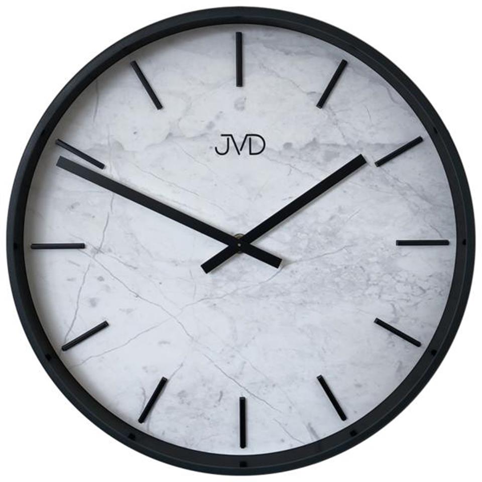 JVD HC23.2 Quarz-Wanduhr, Kunststoffgehäuse schwarz, rund, Zifferblatt in Marmor-Optik, Strichskala und Zeiger schwarz Durchmesser ca. 30 cm Tiefe ca. 4,5 cm Gewicht ca. 735,0 g