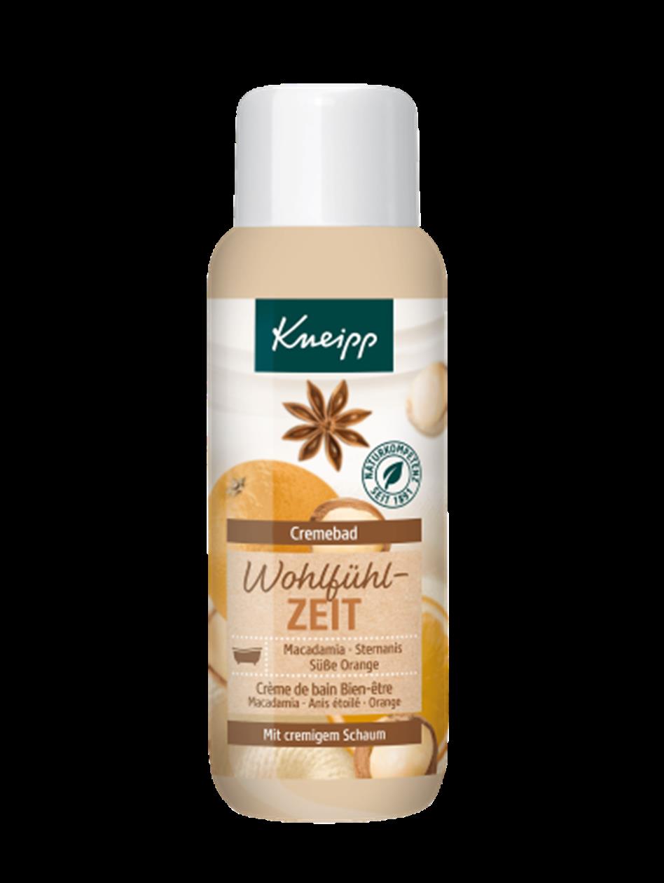 Verwandle Dein Badezimmer in Deine ganz persönliche Wohlfühloase! Das Kneipp® Cremebad Wohlfühlzeit mit natürlichen ätherischen Ölen der süßen Orange und des Sternanis und hochwertigem Macadamiamilchextrakt schütztdie Haut vor dem Austrocknen und zaubert eine wohlig-behagliche Atmosphäre. Die Pflegeformel aus Pflanzenmilchextrakt und natürlichem pflegenden Öl, in Kombination mit gemütlichem Duft und langanhaltendem cremigen Schaum, machen dieses Bad zu einem Wohlfühlerlebnis für Körper und Geist.