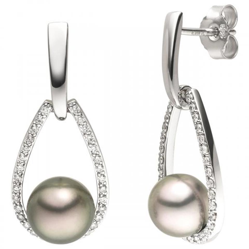 Ohrhänger 585 Gold Weißgold 2 Tahiti Perlen 64 Diamanten Brillanten
