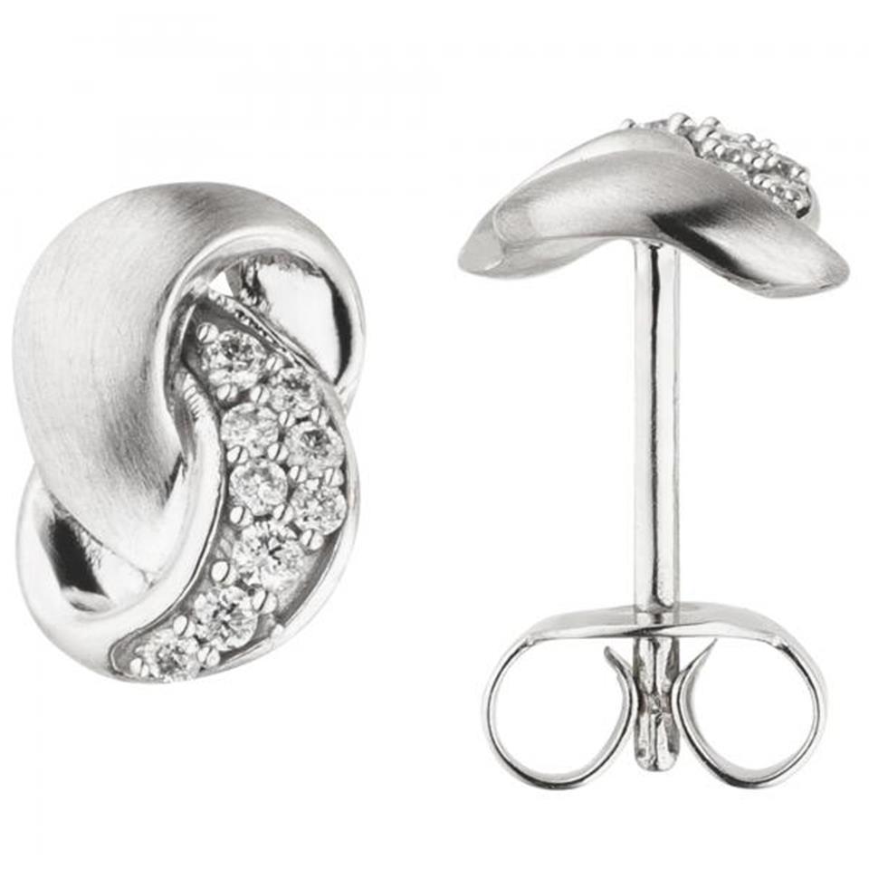 Ohrstecker 585 Gold Weißgold teil matt 18 Diamanten Brillanten Ohrringe