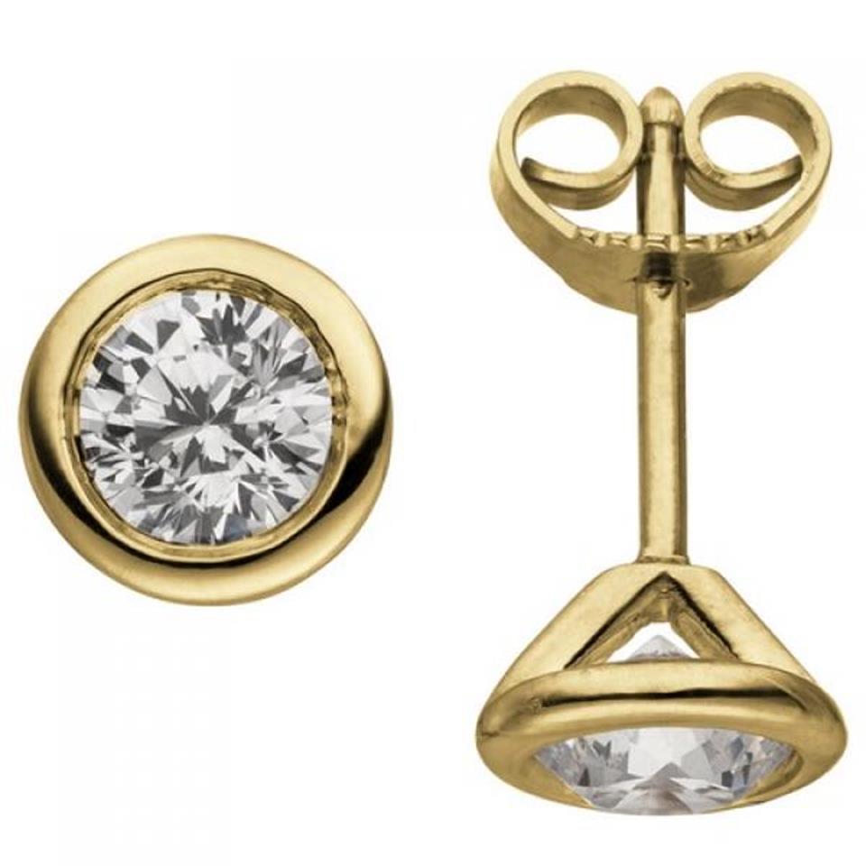 Ohrstecker rund 585 Gold Gelbgold 2 Diamanten Brillanten 1,00 ct. Ohrringe