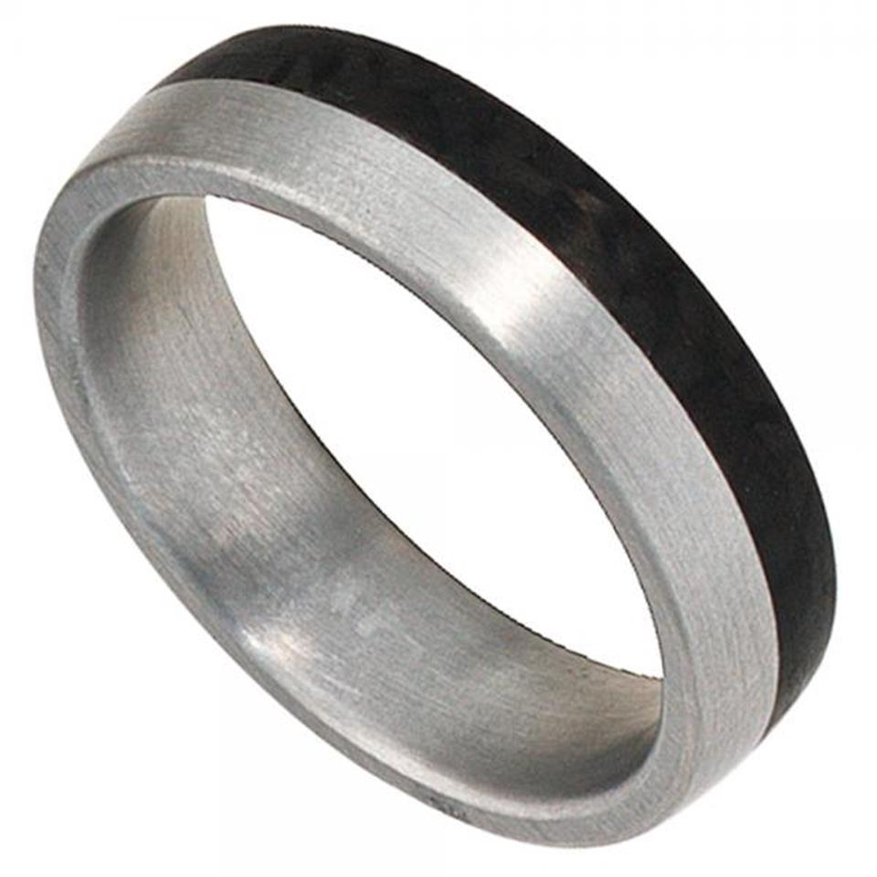 Partnerring mattiertem Edelstahl mit Carbon kombiniert, Breite ca. 6,2 mm, Tiefe ca. 2,4 mm, Gewicht ca. 5,1 g * Bitte beachten Sie die Maße! Auf dem Foto kann der Artikel größer wirken *